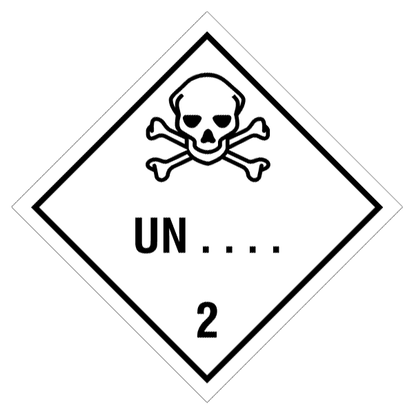 Etiketten zur Kennzeichnung von Versandstücken der Gefahrgutklasse 2.3 im Land- und Seeverkehr mit eingedruckter UN-Nummer