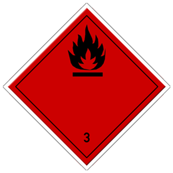 Grosszettel (Placards) zur Kennzeichnung von Versandstücken der Gefahrgutklasse 3 im Land- und Seeverkehr mit weissem Rand