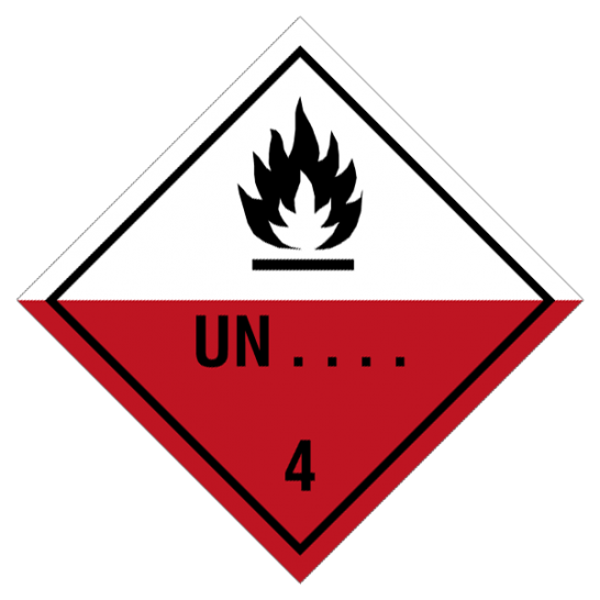 Etiketten zur Kennzeichnung von Versandstücken der Gefahrgutklasse 4.2 im Land- und Seeverkehr mit eingedruckter UN-Nummer